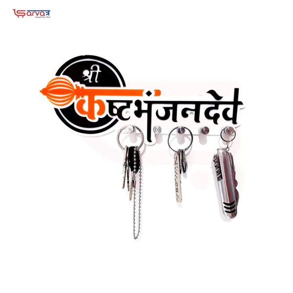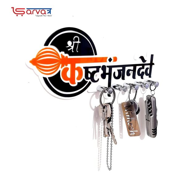 Sarvatr Acrylic Key Holder | Shree Kashtbhanjan dev Key Stand for Wall | Devotional Key Holder | 5 Key Hook | Decorative Acrylic Key Stand