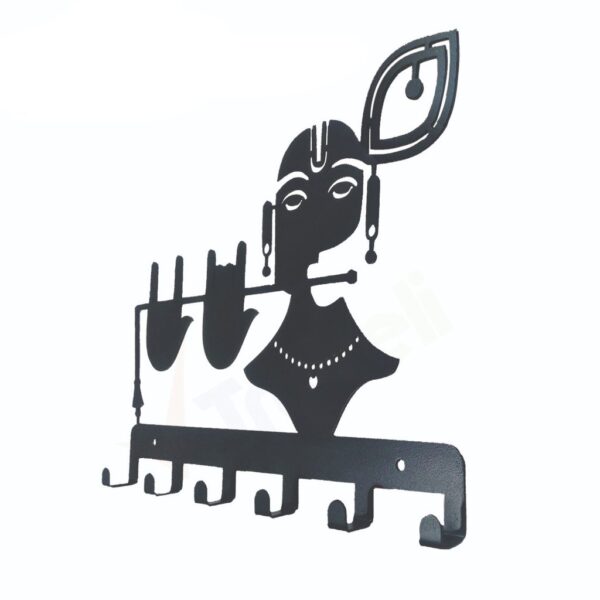 Sarvatr Metal Wall Keyholder | 6 Hook Krishna Wall Rack Steel Key Holder